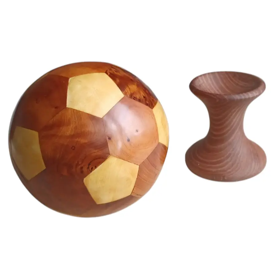 Chaque pièce est unique : Sculptée dans de la véritable loupe de thuya, cette création présente des motifs, veinages et teintes naturellement variés, ce qui rend chaque ballon de foot singulier et authentique.