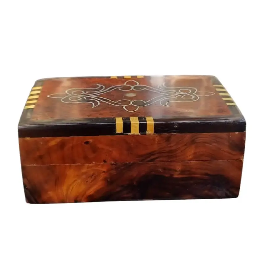 Offrez un cadeau original et authentique avec cette boîte en loupe de thuya, façonnée à la main par des artisans marocain détenteur d'un savoir-faire artisanal d’exception. Ses incrustations complexes et son bois précieux en font un objet à la fois élégant et unique, idéal pour conserver de petits trésors ou embellir un intérieur.