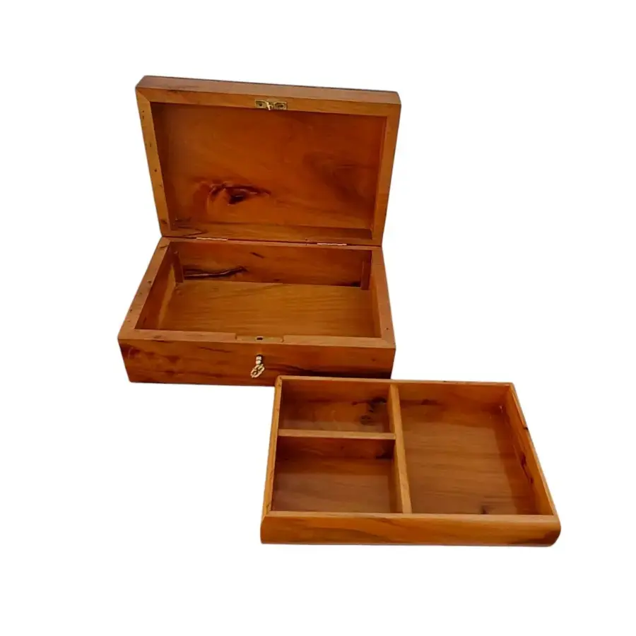 Chaque pièce est unique : chaque boîte présente des motifs, veinages et teintes naturellement variés, ce qui rend chaque création absolument singulière.