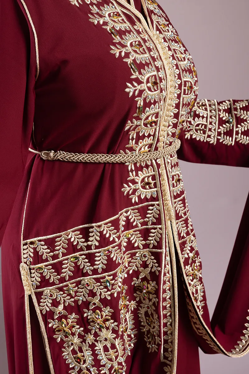 Caftan Bordeaux - Broderies dorées & motifs orientaux :