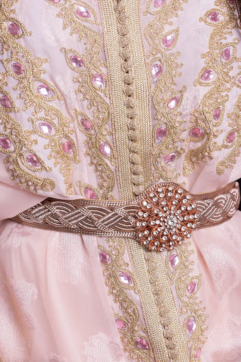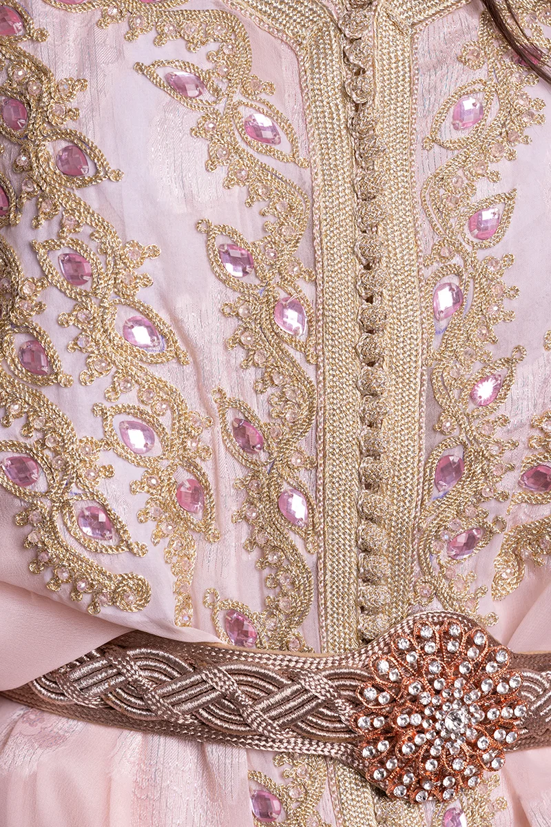 Caftan Rubis - Brodé de fil d'or et de perles roses :