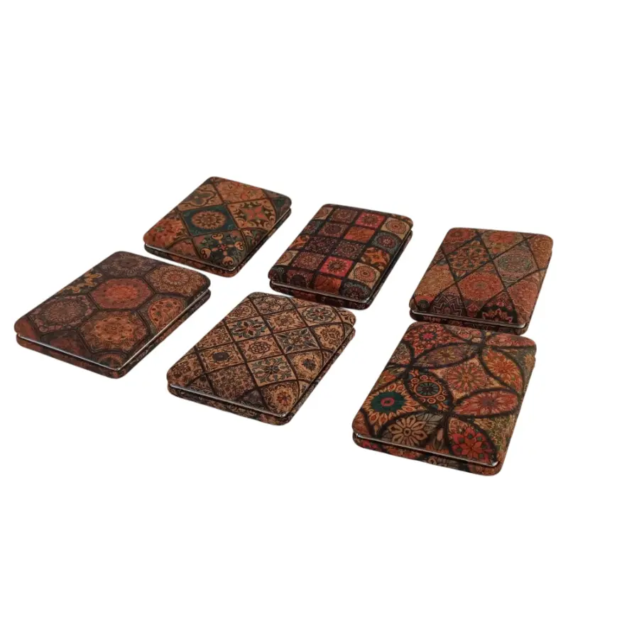 La Route Du Caftan vous invite à sublimer votre quotidien avec ces élégants miroirs de poche rectangulaires, alliant style et praticité. Conçus sans strass pour un rendu épuré, ces accessoires raffinés sont disponibles en deux modèles uniques. Le premier arbore un superbe motif effet bois, apportant une touche naturelle et authentique. Le second séduit par ses motifs colorés et son aspect liège, évoquant un esprit bohème et artisanal. Parfaits pour une retouche beauté à tout moment, ces miroirs allient tradition et modernité avec élégance.