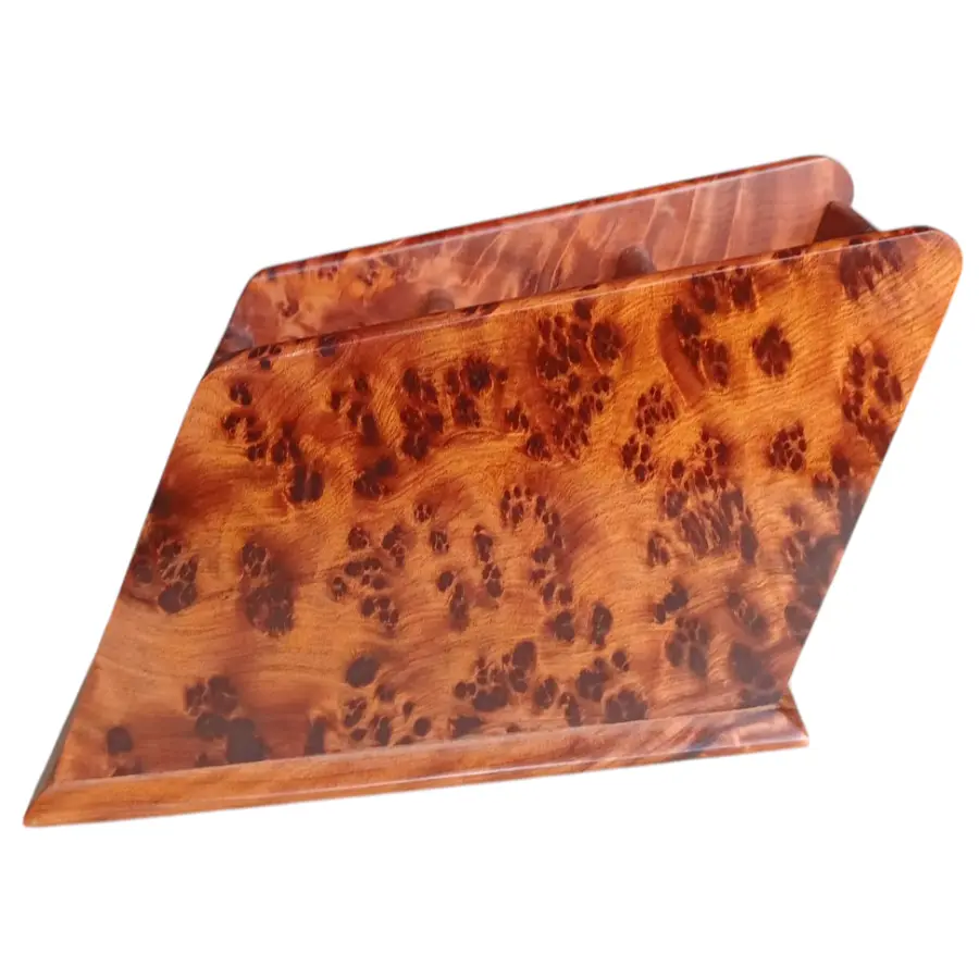 Chaque pièce est unique : Sculptée dans de la véritable loupe de thuya, chaque création présente des motifs, veinages et teintes naturellement variés, faisant de chaque support un objet d'art unique.